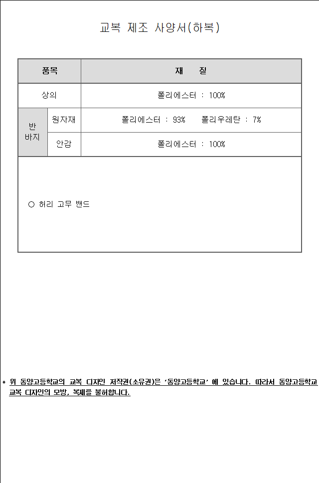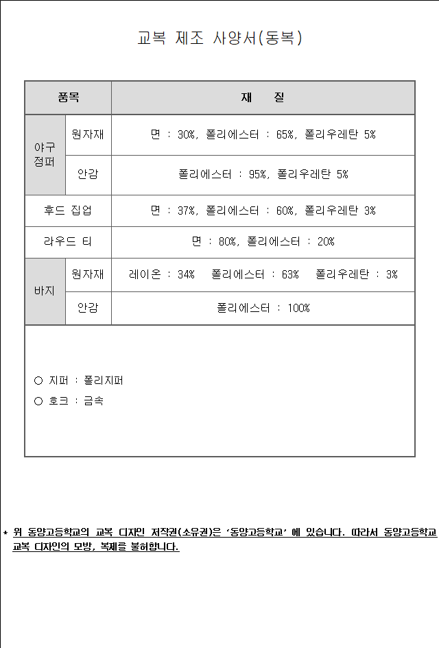 가. 구 매 명 : 동양고등학교 교복(동복 및 하복) 제조․구매