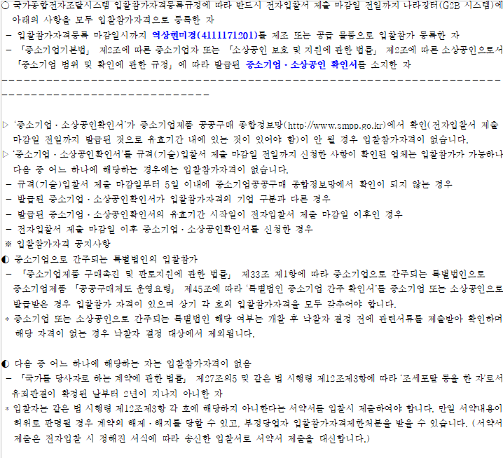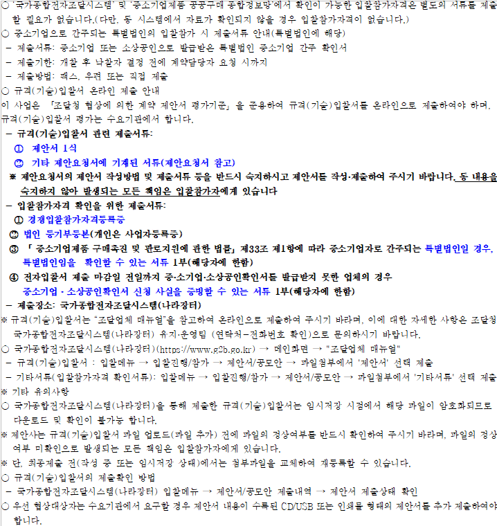 기타 세부사항은 전자입찰 공고서에 첨부된 과업내용서, 내역서 등을 반드시 확인하시기 바랍니다.