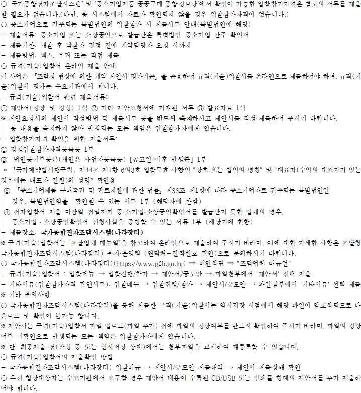 기타 세부사항은 전자입찰 공고서에 첨부된 과업내용서, 내역서 등을 반드시 확인하시기 바랍니다.