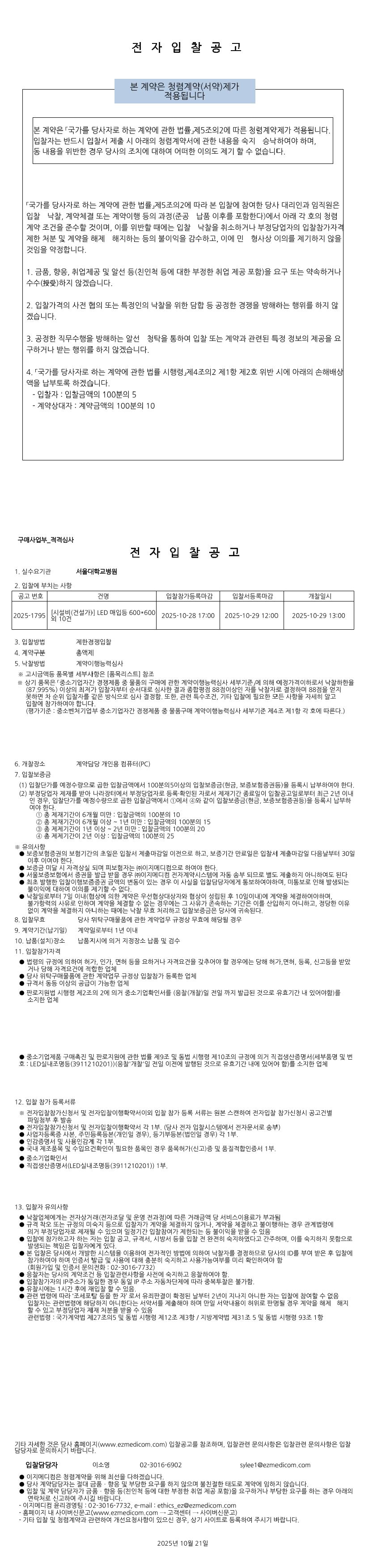 서울대학교병원 [시설비(건설가)] LED 매입등 600*600 외 10 건 |