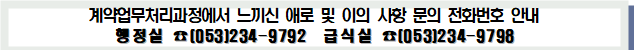 - 물품규격 및 납품조건에 관한 사항: 원화중 급식실(☎ 053-234-9798)