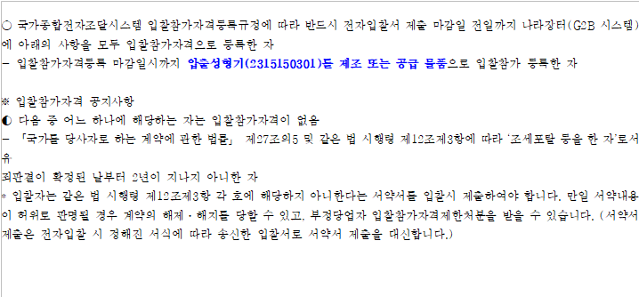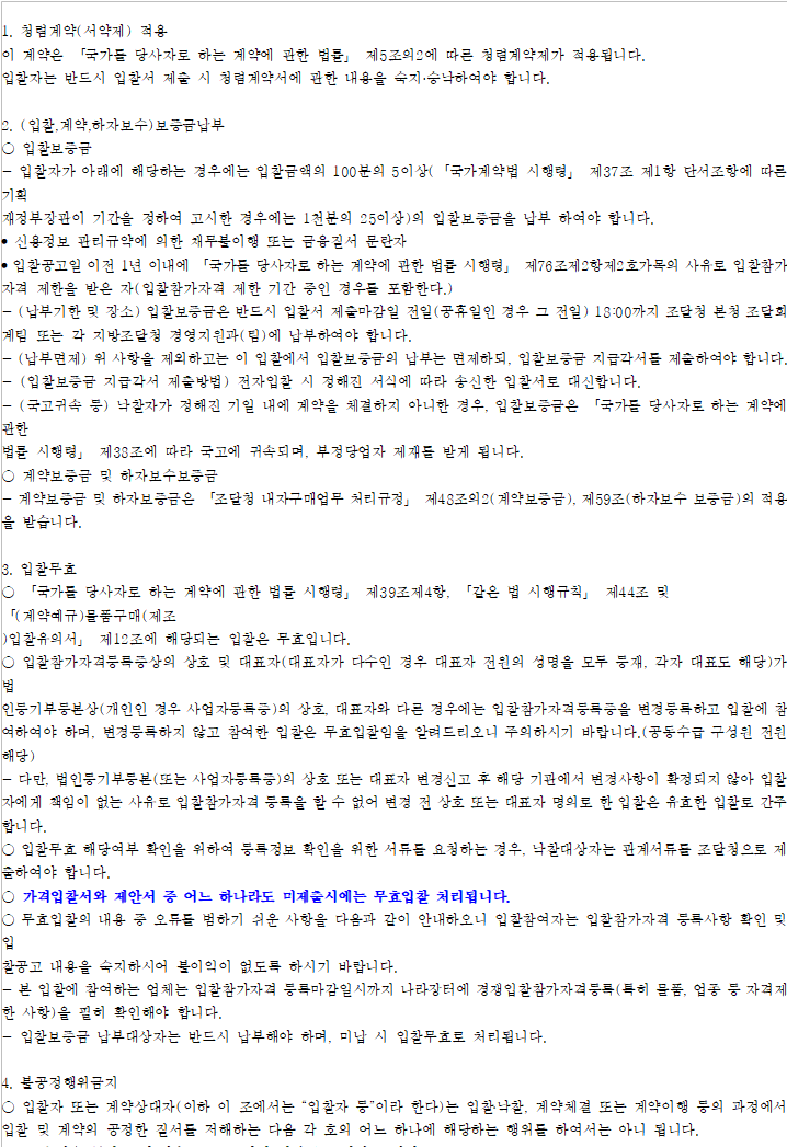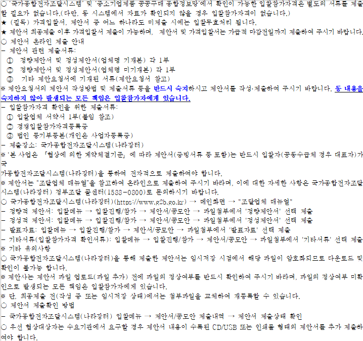 기타 세부사항은 전자입찰 공고서에 첨부된 과업내용서, 내역서 등을 반드시 확인하시기 바랍니다.