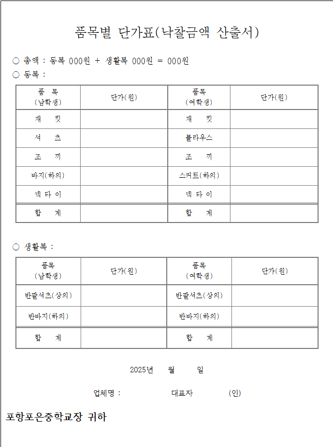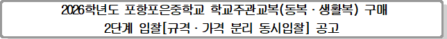 「2026학년도 포항포은중학교 학교주관교복(동복 및 생활복) 구매」업체 선정을 위해 다음과 같이 공고합니다.」