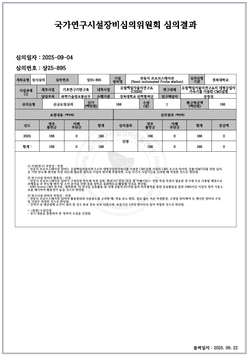 유럽핵입자물리연구소의 대형강입자가속기를 이용한 CMS 실험을 위한 Probe Station 구매 |