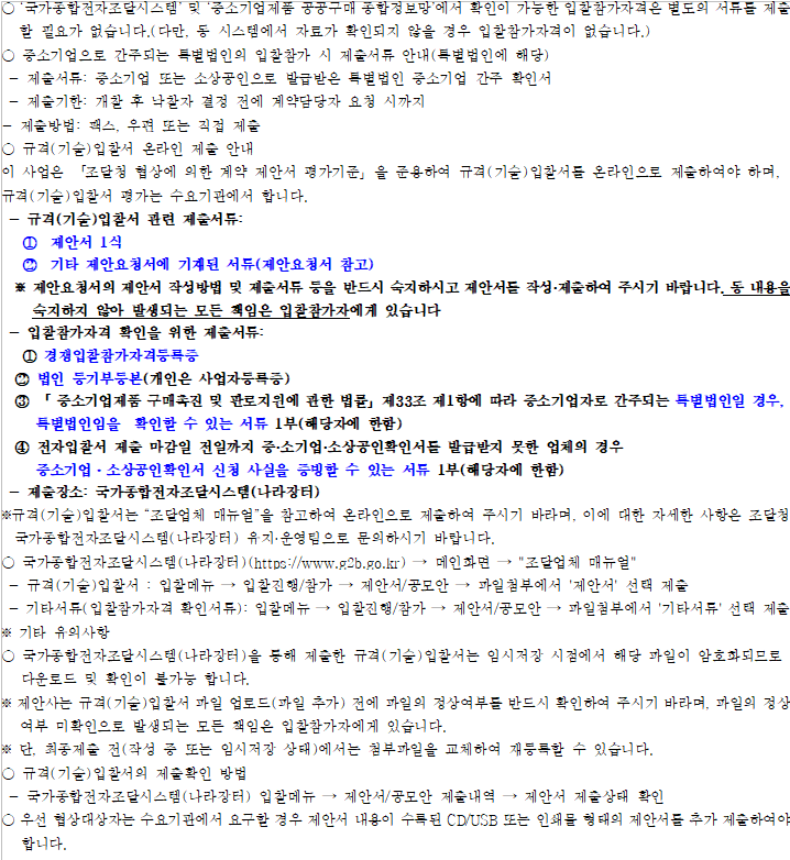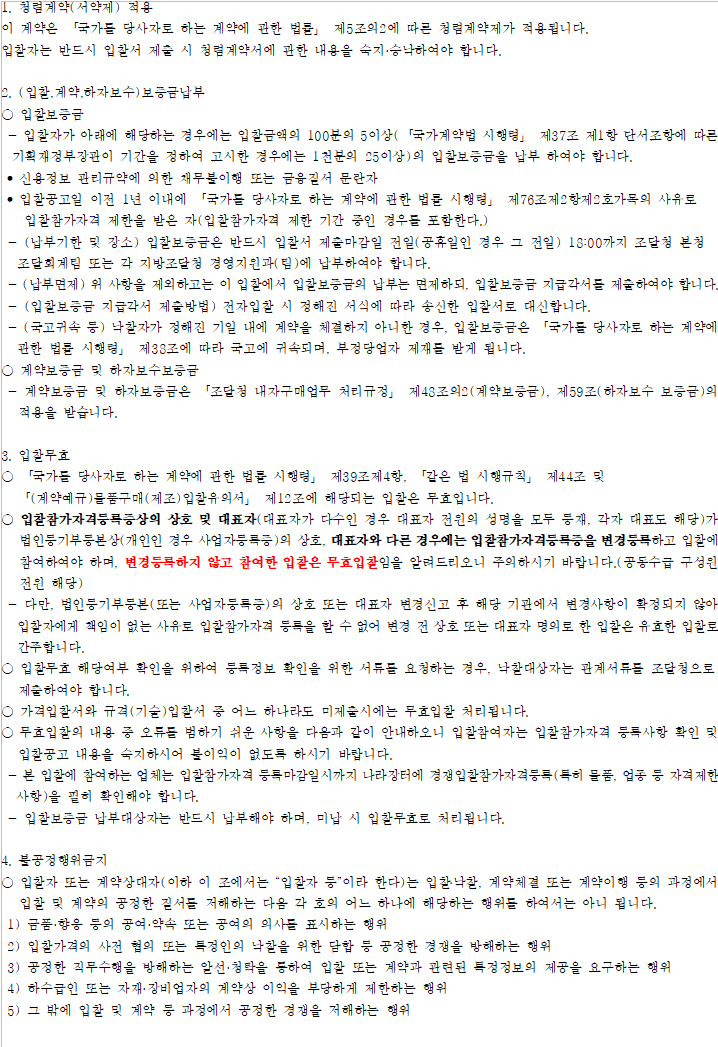 기타 세부사항은 전자입찰 공고서에 첨부된 과업내용서, 내역서 등을 반드시 확인하시기 바랍니다.