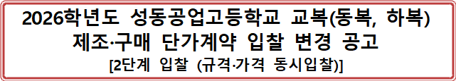 2026학년도 성동공업고등학교 교복 제조·구매 업체 선정을 위하여 다음과 같이 변경 공고합니다.
