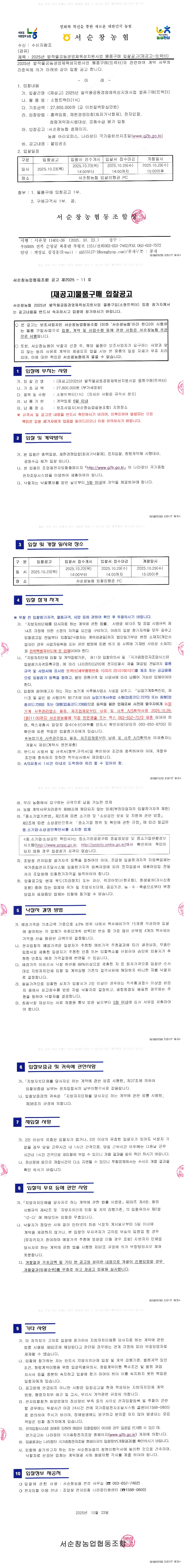 서순창농협 2025년 밭작물공동경영체육성지원 사업 물품구입 |
