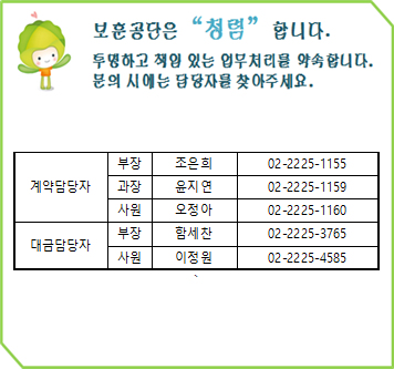 아. 본 공고는 우리공단 홈페이지(www.bohun.or.kr) 게재되며, 기타 자세한 사항은 아래 연락처로 문의하시기 바랍니다.