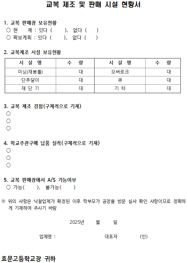 가. 구 매 명 : 효문고등학교 교복(동복 및 하복) 제조·구매