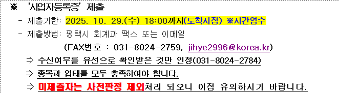 - 계약에 관한 사항 : 평택시 회계과 (☎031-8024-2784)