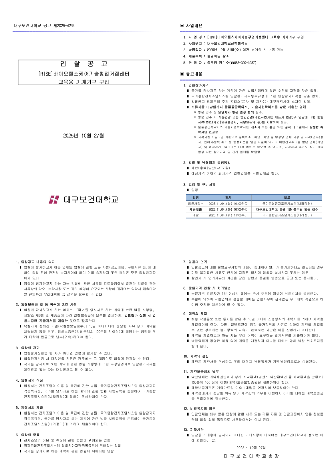 [RISE]바이오헬스케어기술창업거점센터 교육용 기계기구 구입 |