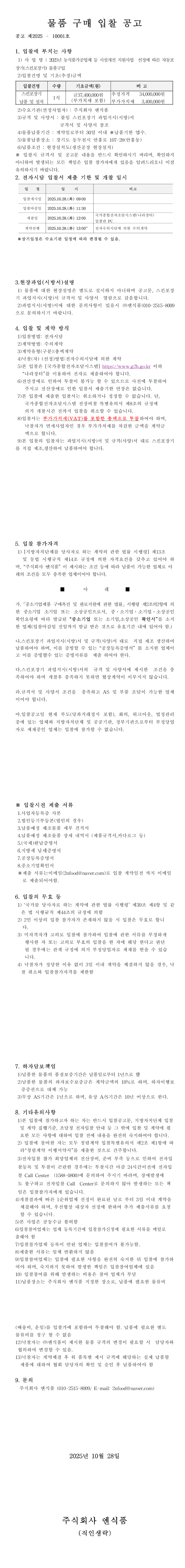 2025년 농식품가공업체 등 시설개선 지원사업 선정에 따른 자동포장기(스킨포장기) 물품구입 |