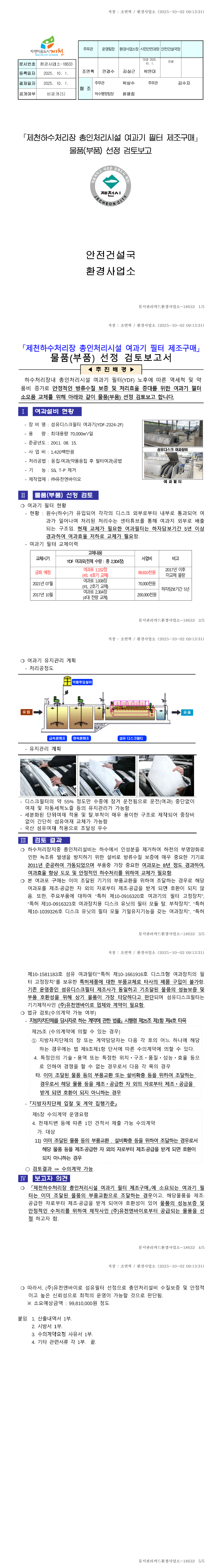 제천하수처리장 총인처리시설 여과기 필터 제조구매 |