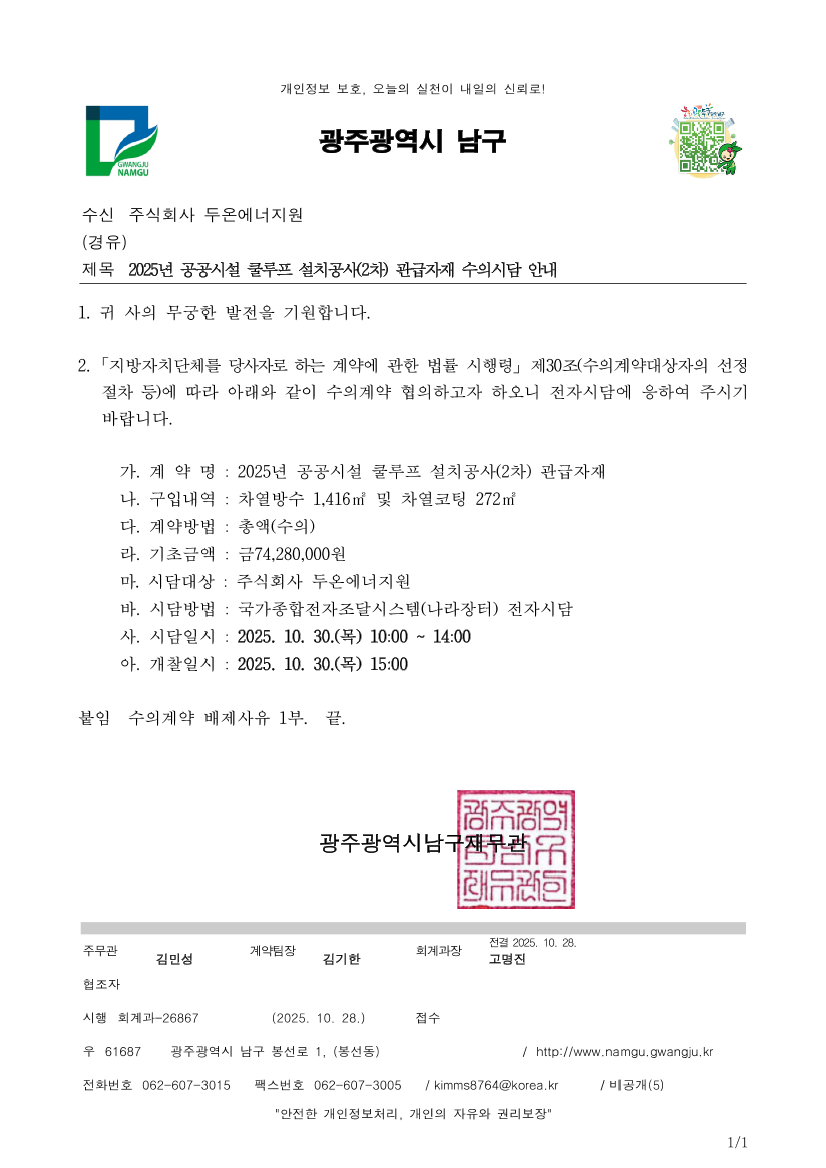 2025년 공공시설 쿨루프 설치공사(2차) 관급자재 |