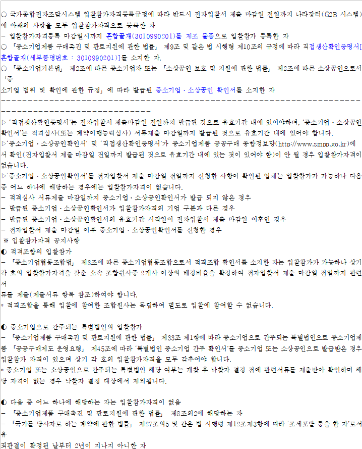 ○ 이 입찰은 「중소기업제품 구매촉진 및 판로지원에 관한 법률」 제7조 제2항 에 따라 낙찰자를 결정합니다.