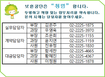 자. 본 공고는 우리공단 홈페이지(www.bohun.or.kr)에 게재되며, 기타 자세한 사항은 아래 연락처로 문의하시기 바랍니다.