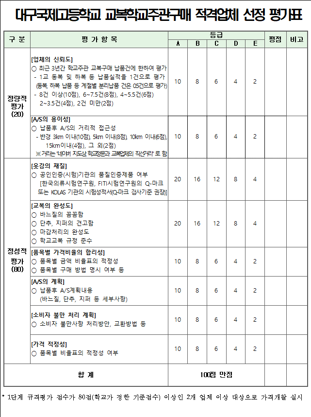 2026학년도 대구국제고등학교 교복(동복·하복) 구매 2단계 입찰 공고