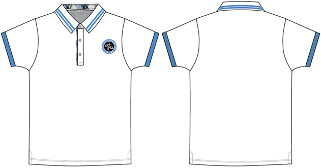 메인컬러 블루 & 화이트, 뒤판 영문 로고, 소매 인조가죽