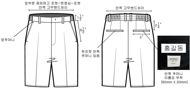 ◉ 허리 안쪽 고무밴드처리, 이름표 부착