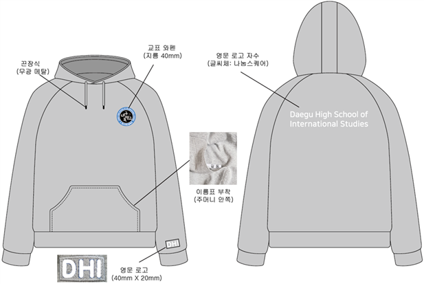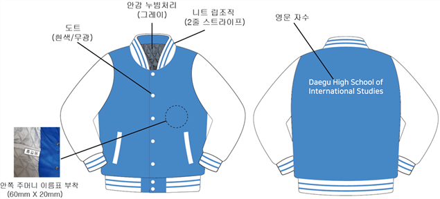 대구국제고등학교 교복(동복, 하복) 규격서 참조