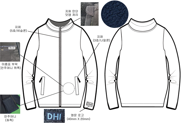 ◉ 좌측 안쪽 주머니, 소매 DHI 영문자수