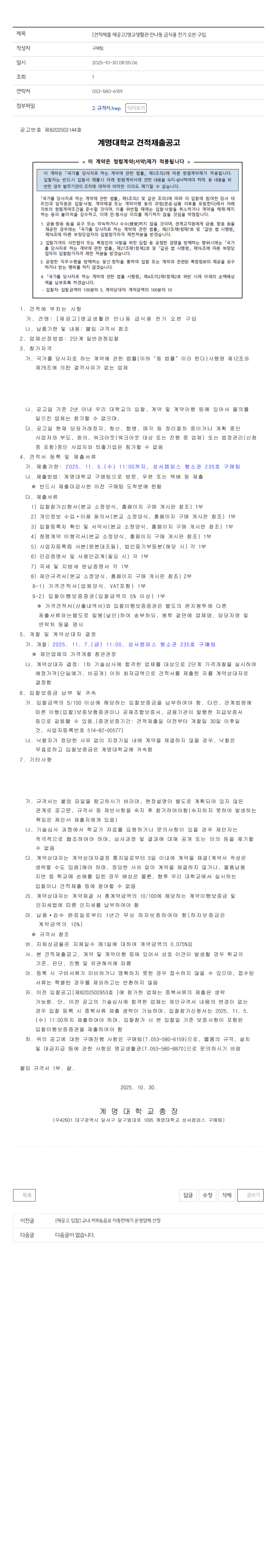 | 공고기관 | 계명대학교 | 수요기관 | 계명대학교 |
