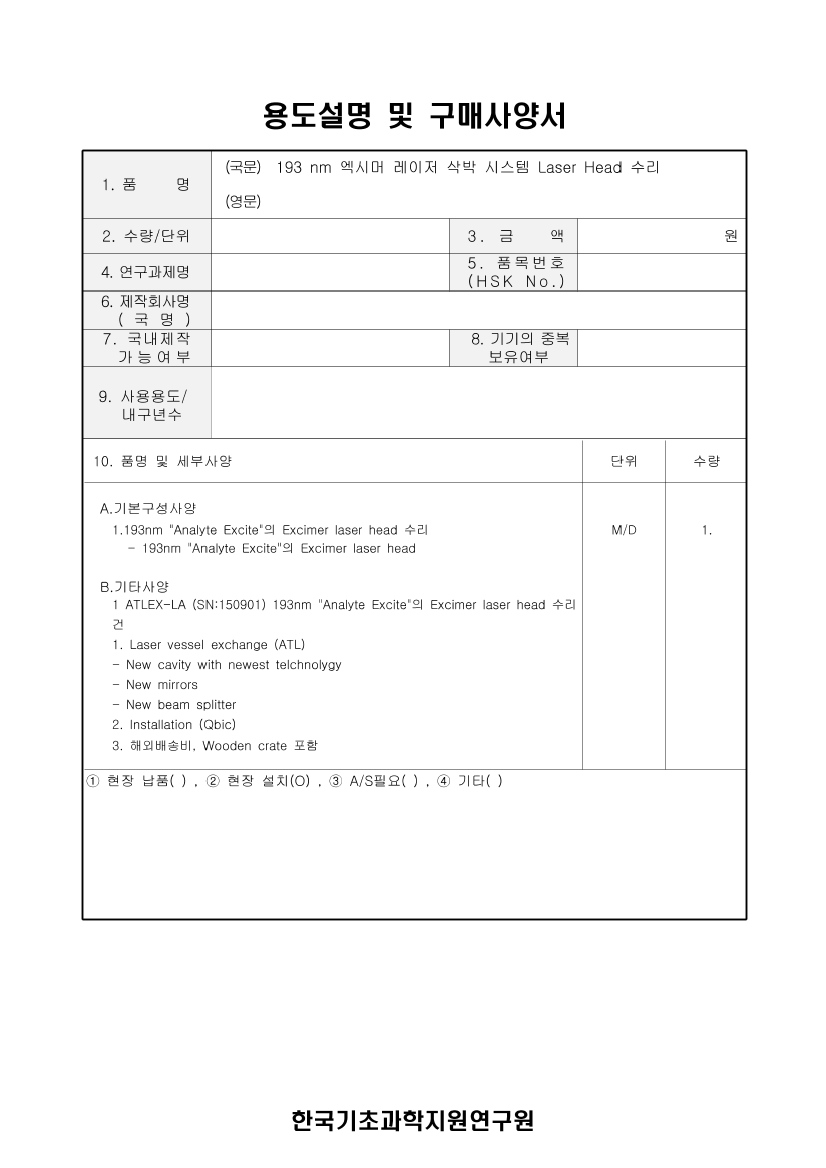 [수의시담] 193 nm 엑시머 레이저 삭박 시스템 Laser Head |