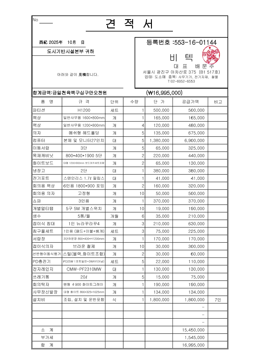 진접선(4호선연장) 차량기지 철도종합시험운행 상황실 비품 설치 |