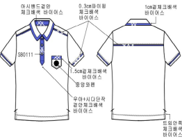 | 1.색상    -감색   -배색:    하늘색체크    2. 혼용율   -폴리 100%   -쿨맥스 원단      |   1. 디자인   - 카라끝 1cm 체크배색(바이어스)    - 앞단 겉 배색   - 어깨선/소매/등판 띠 배색   - 주머니 위 1.5cm폭 체크배색   - 밑트임 안쪽체크배색(바이어스)   - 주머니 중앙 교표 위치  2. 3년간 입을 수 있도록 넉넉히   3. 겉으로 상표가 드러나지 않아    야함  |
