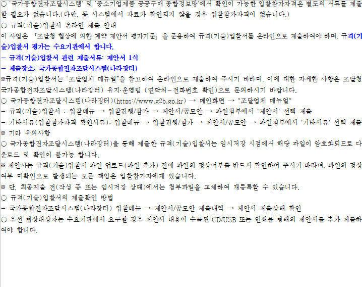 |    기타 세부사항은 전자입찰 공고서에 첨부된 과업내용서, 내역서 등을 반드시 확인하시기 바랍니다.  |
