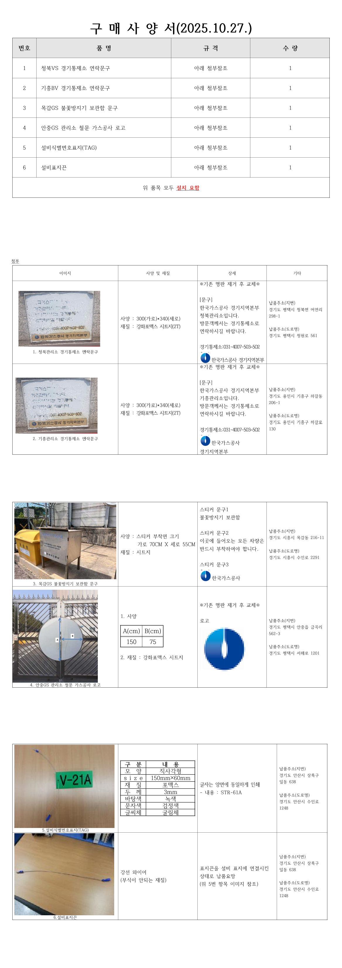 | 공고명 | 연락문구 및 표지판 등 (6종) |