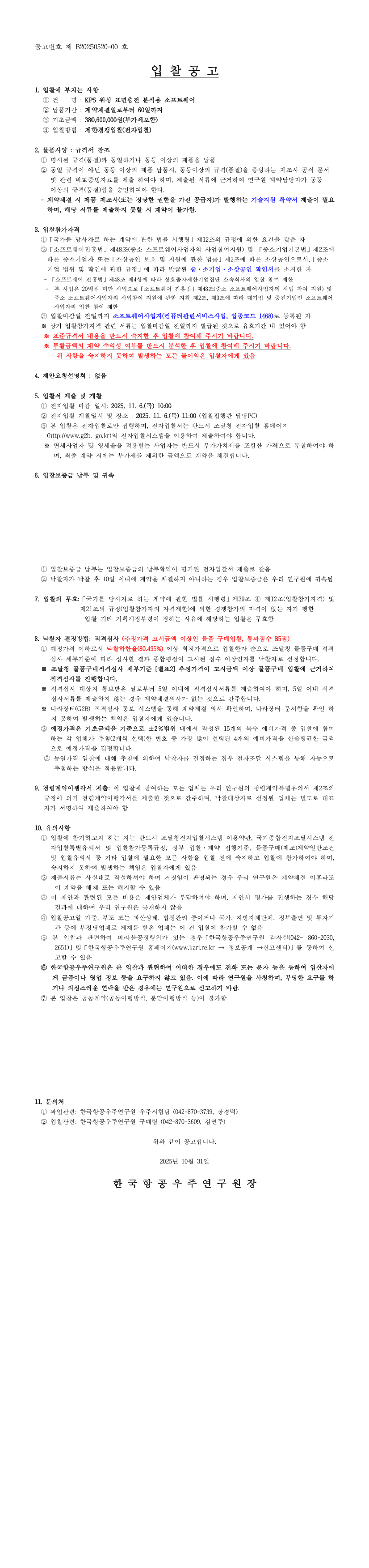 | 공고명 | KPS 위성 표면충전 분석용 소프트웨어 |