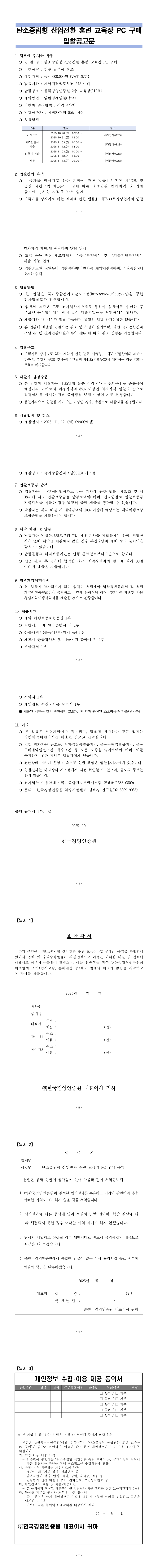탄소중립형 산업전환 훈련 교육장 PC 구매 입찰공고문 |
