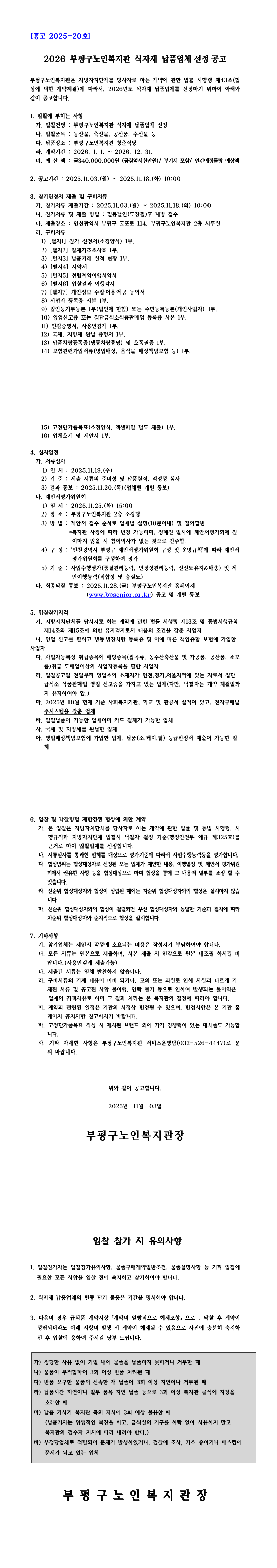 2026 부평구노인복지관 식자재납품업체 선정 |