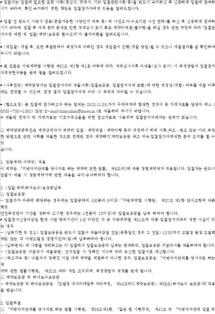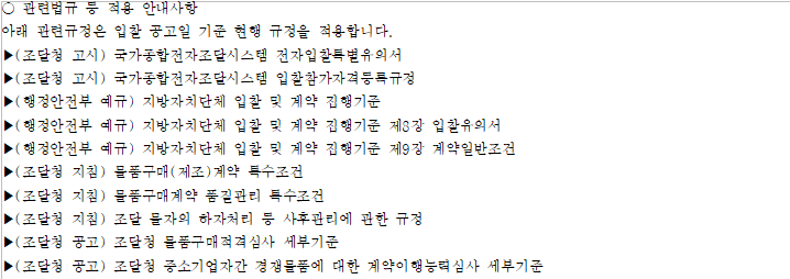 ○ 이 입찰은 「지방자치단체를 당사자로 하는 계약에 관한 법률」 제13조 제2항 제1호 및 같은 법 시행령 제42조 제1항 및