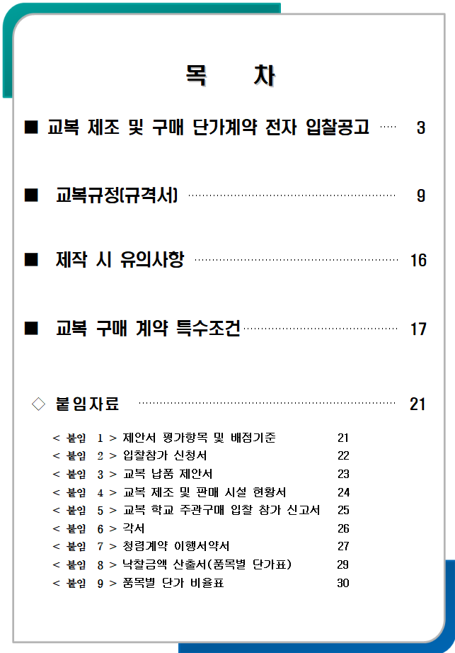 (2) 교복 납품 제안서[붙임3] 11부(평가위원 10부 + 계약부서 보관용 1부)