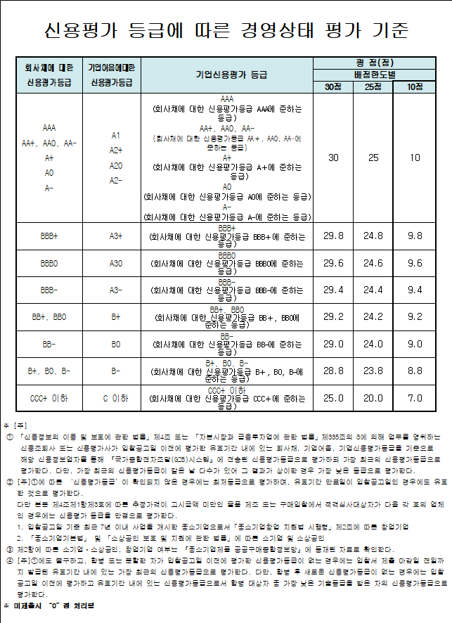 <붙임 7-1> 신용평가 등급 및 배점기준