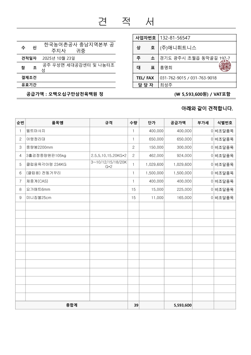 우성면 기초생활거점육성사업 실내운동기구(2차) 제조구매 |