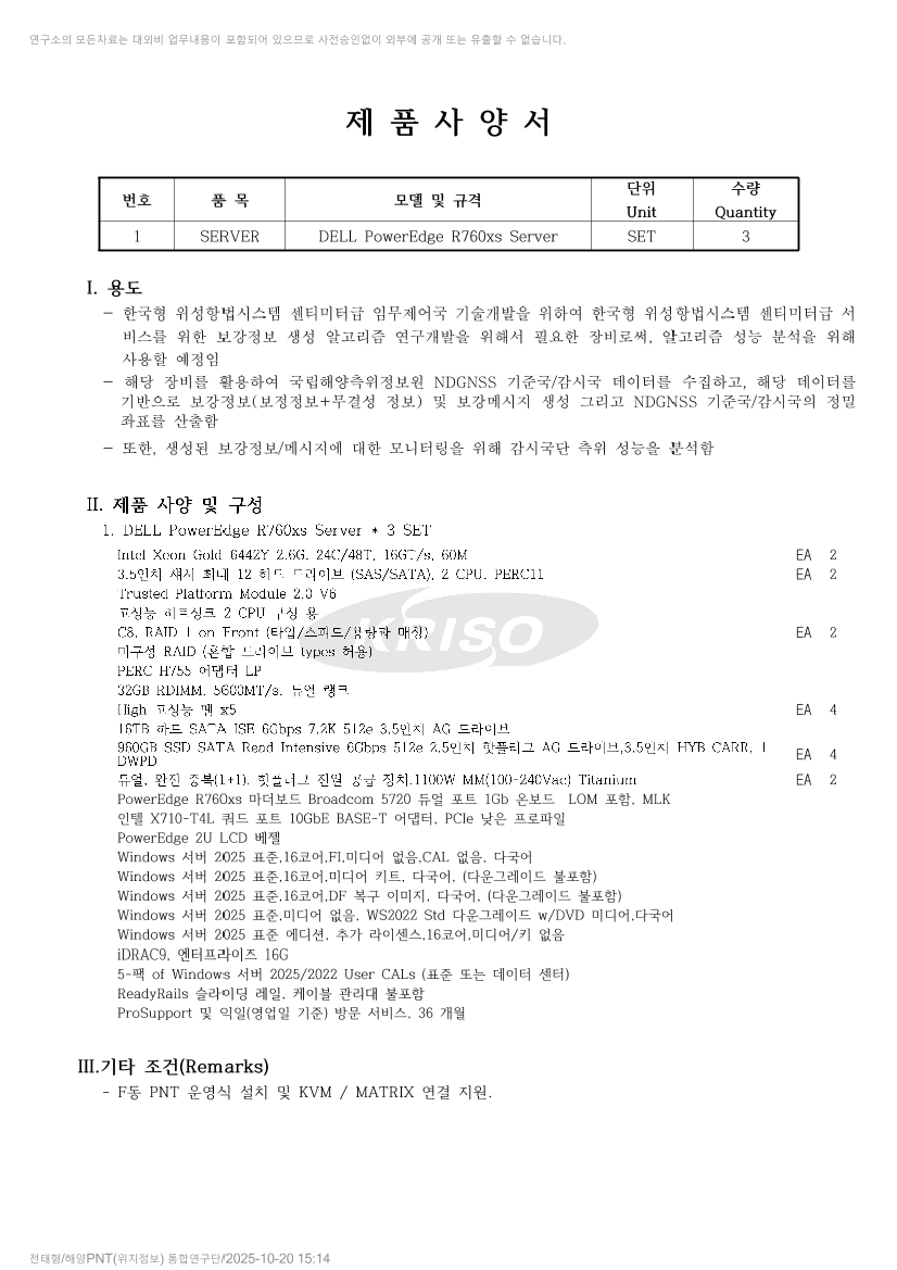 한국형 위성항법시스템 센티미터급 임무제어국 연구개발용 서버 |