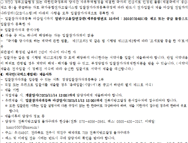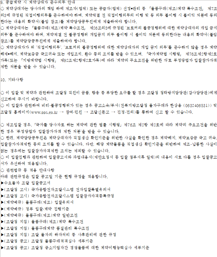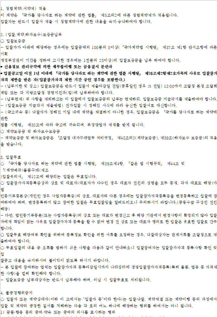 ○ 이 입찰은 「국가를 당사자로 하는 계약에 관한 법률」 제10조 제2항 제1호 및 같은 법 시행령 제42조 제1항에 따라 낙찰
