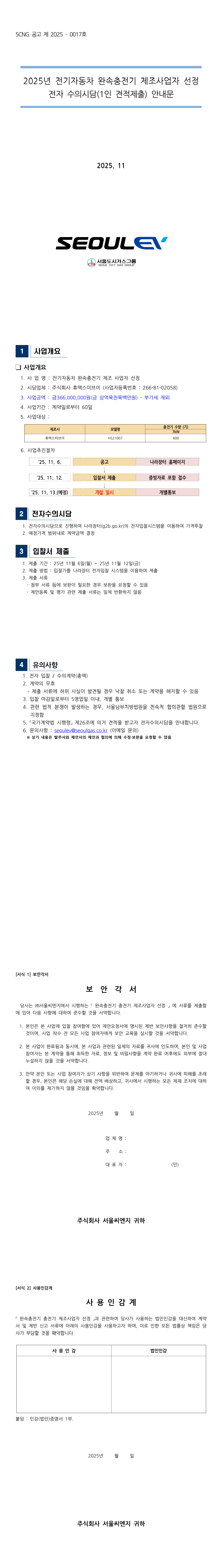 전기자동차 완속충전기 제조사업자 선정 (25년 17차) |