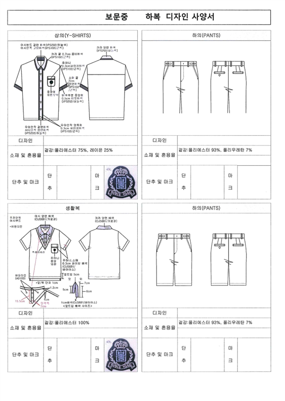 보문중학교 교복 제작 사양서 참조【붙임 】