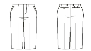 바지는 허리 아래로 주름 두 개를 하고 길이는 복사뼈 아래로 하며 바지 밑단 폭은 일반형으로 밑단을 걷어 올릴 때 자연스럽게 무릎 위까지 올라가야 한다.
