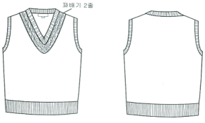 V넥 니트 조끼를 착용하되, 착용한 상태에서 셔츠가 보이지 않는 기장이어야 한다.