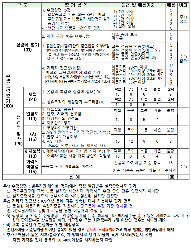 사. 교복 학교주관구매 제도 저해 업체에 대하여 본교 입찰자격을 배제 할 수 있습니다.
