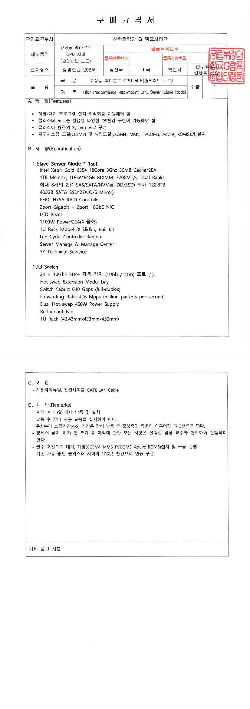 고성능 랙마운트 CPU 서버(슬레이브 노드) |