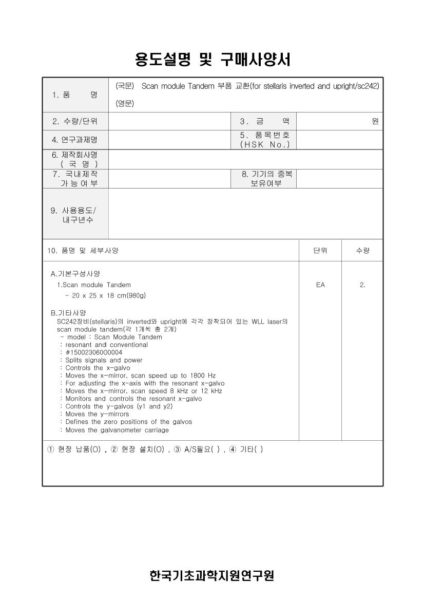 [수의시담] Stellaris(SC242)장비의 WLL 내 Scan module Tandem 교체(2대) |