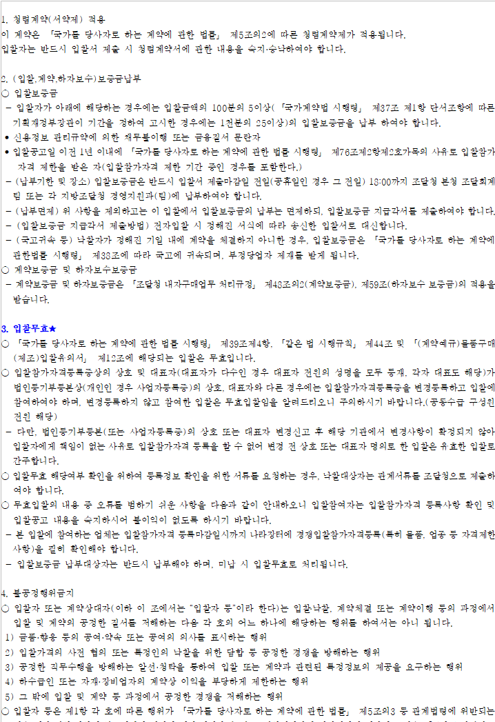 이 입찰 설명서는 입찰자와 낙찰자가 숙지하고 준수하여야 할 사항을 기재한 것으로써 모든 입찰희망자는 이를 열람하여야 합니다.