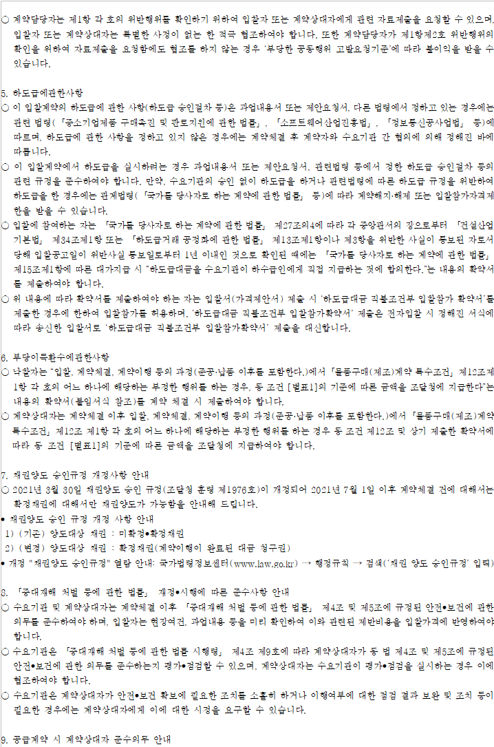 ※ 상세 내용은 「물품 구매(제조)계약 특수조건」제12조 참고