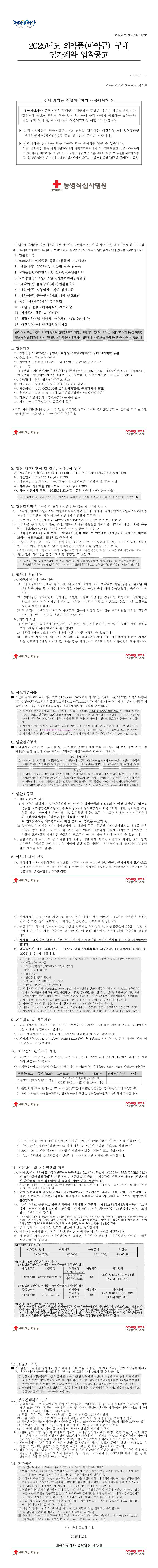 2025년도 의약품(마약류) 구매 단가계약 입찰 |